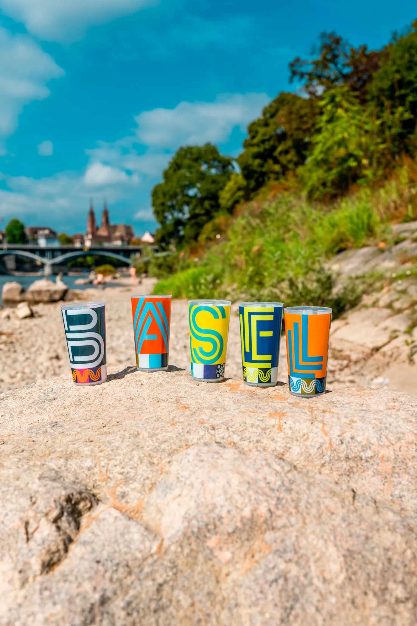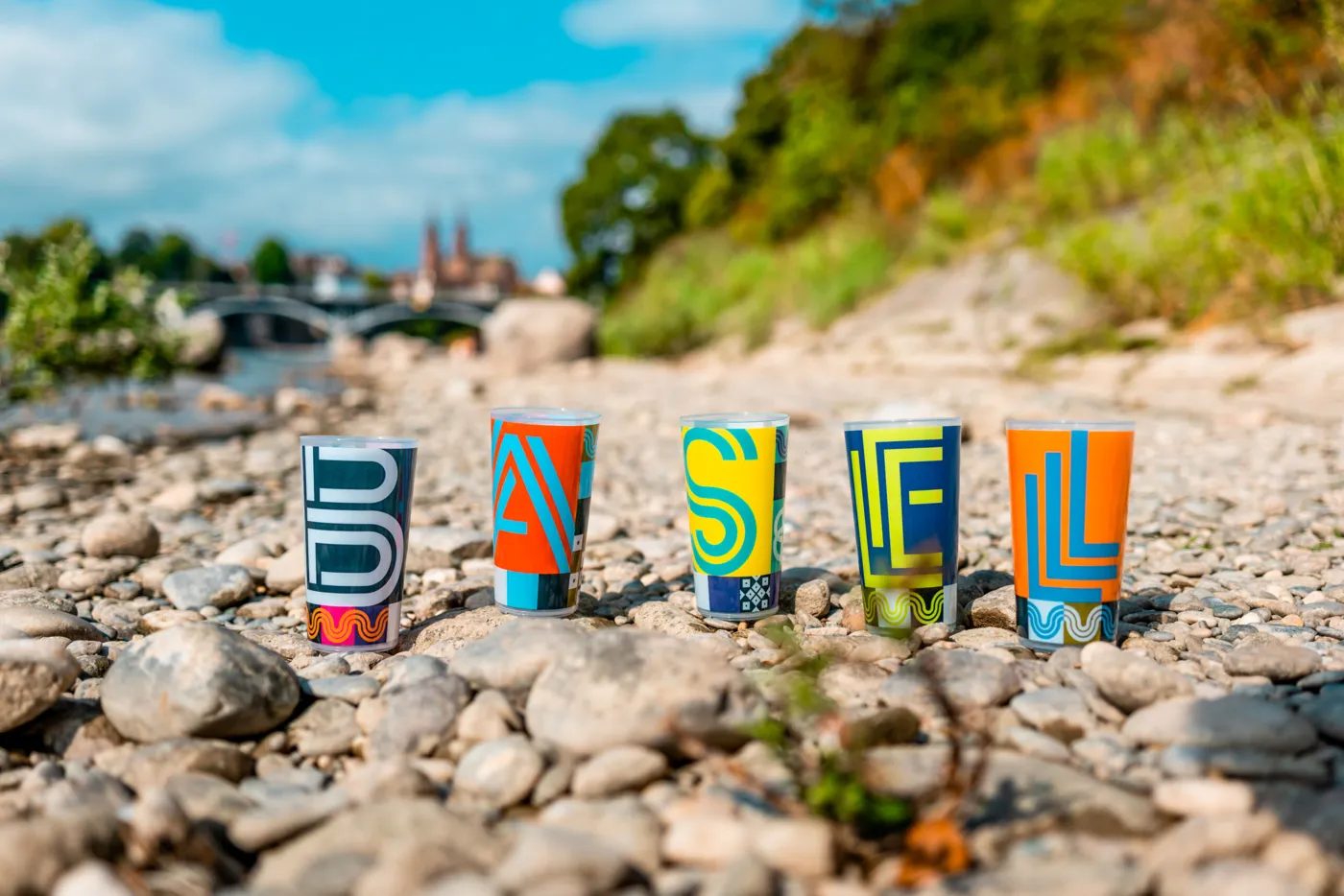 Die Idee: Statt Einwegbecher wandern fünf verschiedene Flâneur-Becher durch die Hände der Festivalgäste. Jeder Becher zeigt einen einzelnen Buchstaben. Wer alle fünf sammelt, hält am Ende kein Durcheinander wie LASEB oder ELBSA in den Händen, sondern das, was uns verbindet: B A S E L.