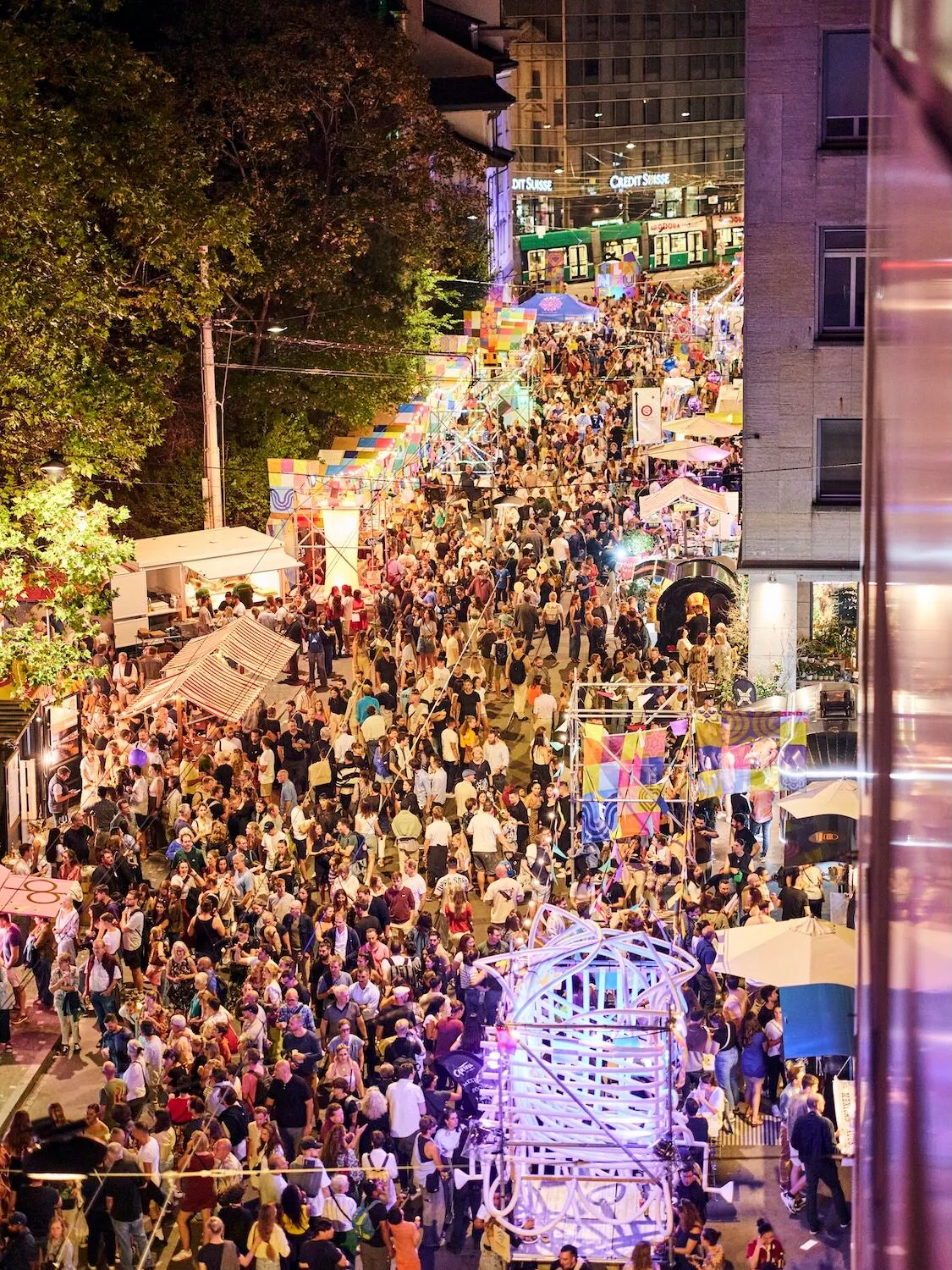 2019 war schliesslich die Zeit gekommen, die schützende Kuppel der Markthalle zu verlassen und den Stadtraum aufzumischen. Das Flâneur begab sich mitten ins Getümmel und verwandelte die Clarastrasse in einen unerwarteten und sonderbaren Ort. Über 20'000 Besuchende hauchten dem Festival Leben ein und begannen, im Stadtraum zu flanieren. Nach zwei Jahren pandemiebedingter Pause kam das Flâneur 2022 an der Falknerstrasse zurück – über 50'000 Menschen freuten sich. In den letzten Jahren schliesslich wurde die Elisabethenstrasse zum Zentrum des Spektakels. Hier wurde endgültig klar: Das Flâneur Festival ist mehr als ein x-beliebiger Event. Es ist ein Gefühl. Eine Bewegung. Die Stadt wird zur Bühne, die Besuchenden sind Teil einer grossen, friedlichen Gemeinschaft. Einer Gemeinschaft mit unterdessen an die 100'000 Menschen, unter ihnen ein neues, junges und urbanes Publikum.
